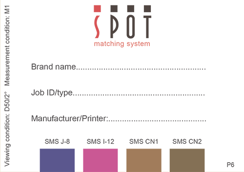 We recommend use of so called SMS tickets, which are small approx. size A7 tickets containing only the SMS spot colours to be watched during printing.